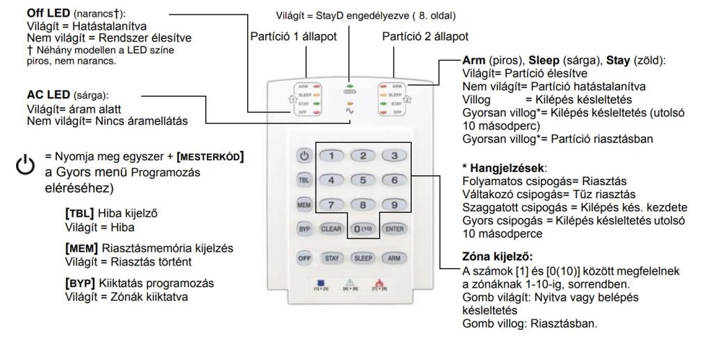 Paradox K10V ledes kezelőegység egyszerűsített kezelési leírás: